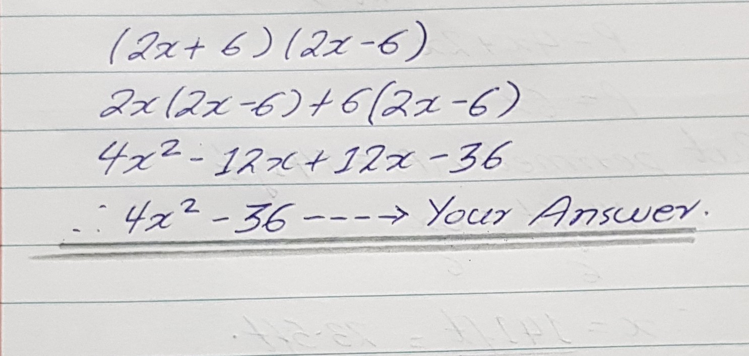 The answer should be ( 2x + 6) (2x - 6) By proving through expansion: