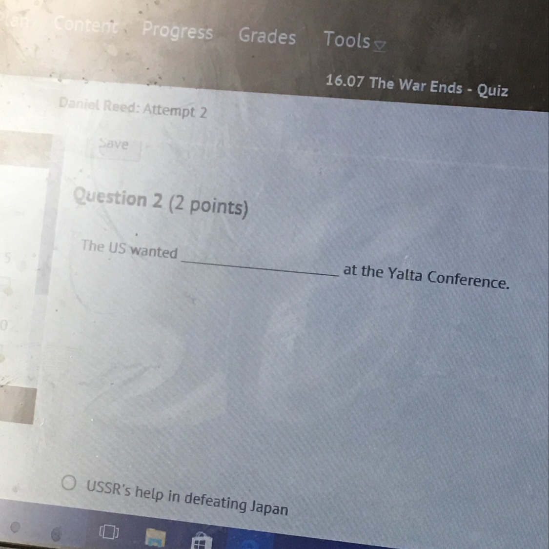 Best answer:  The USSR's help in defeating Japan.