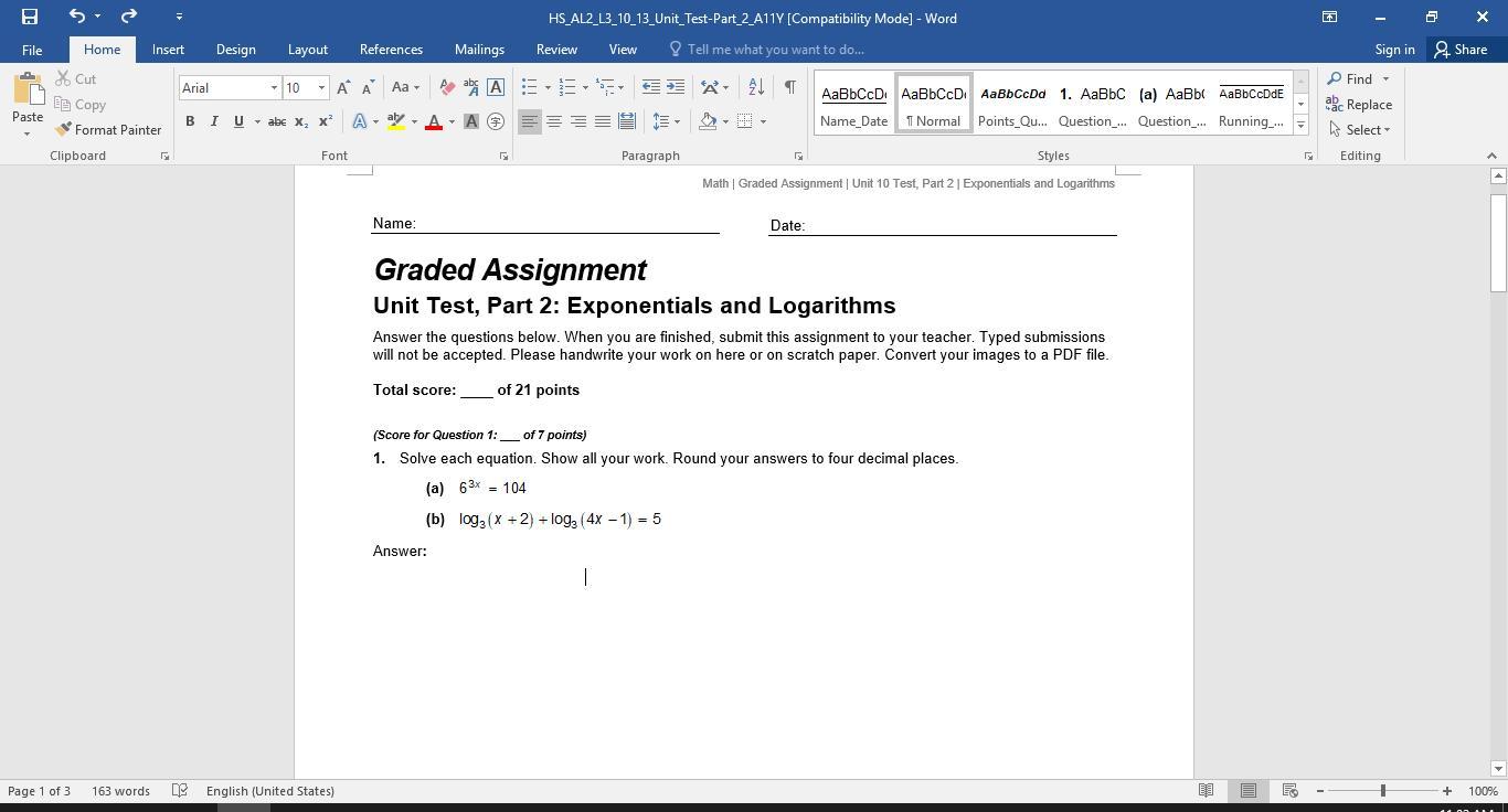 Second page: A log argument must be positive (the number in the log x place), so and number for x greater than 3 will satisfy this requirement.