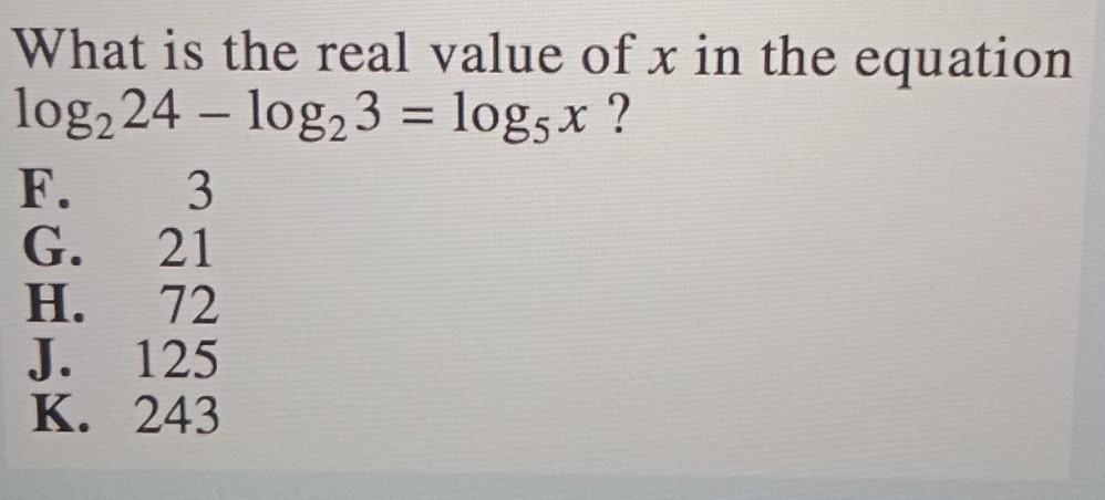 log₅ x = log₂ 24 - log₂ 3