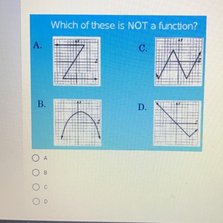 In this case, the only graph that is not a function is A.
