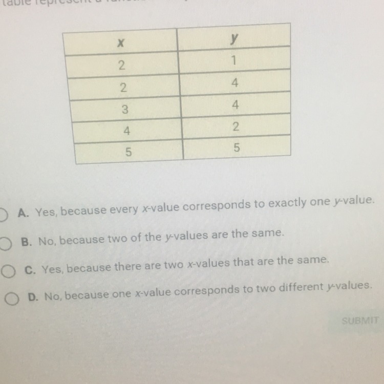 In this graph, all the x values are the same as the y values