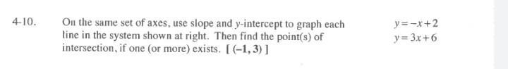 The graphs are shown below. The point of intersection of both the lines is the required solution. As we can see from the graph, the point of intersection is at (-1. 3).