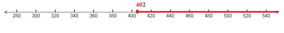 That is, the closed circle on 402 and shaded right in the number line ( shown below )