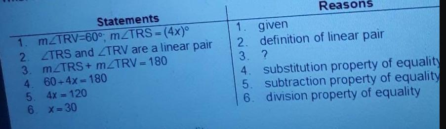 Since the proof for x = 30, the missing reason in step 3 is known to be angle addition postulate.