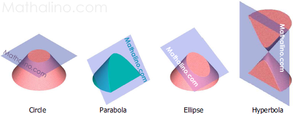 A conic section is a figure formed by the intersection of a plane and a circular cone. Depending on the angle of the plane with respect to the cone, a conic section may be a circle, an ellipse, a parabola, or a hyperbola.