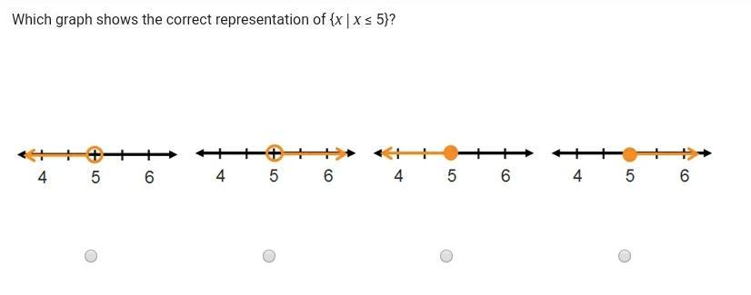 That would be the third one. It has to be a closed circle because it includes the sign, ≤ also meaning that it has the number 5 included. The numbers that are to the left of 5 are smaller, too.