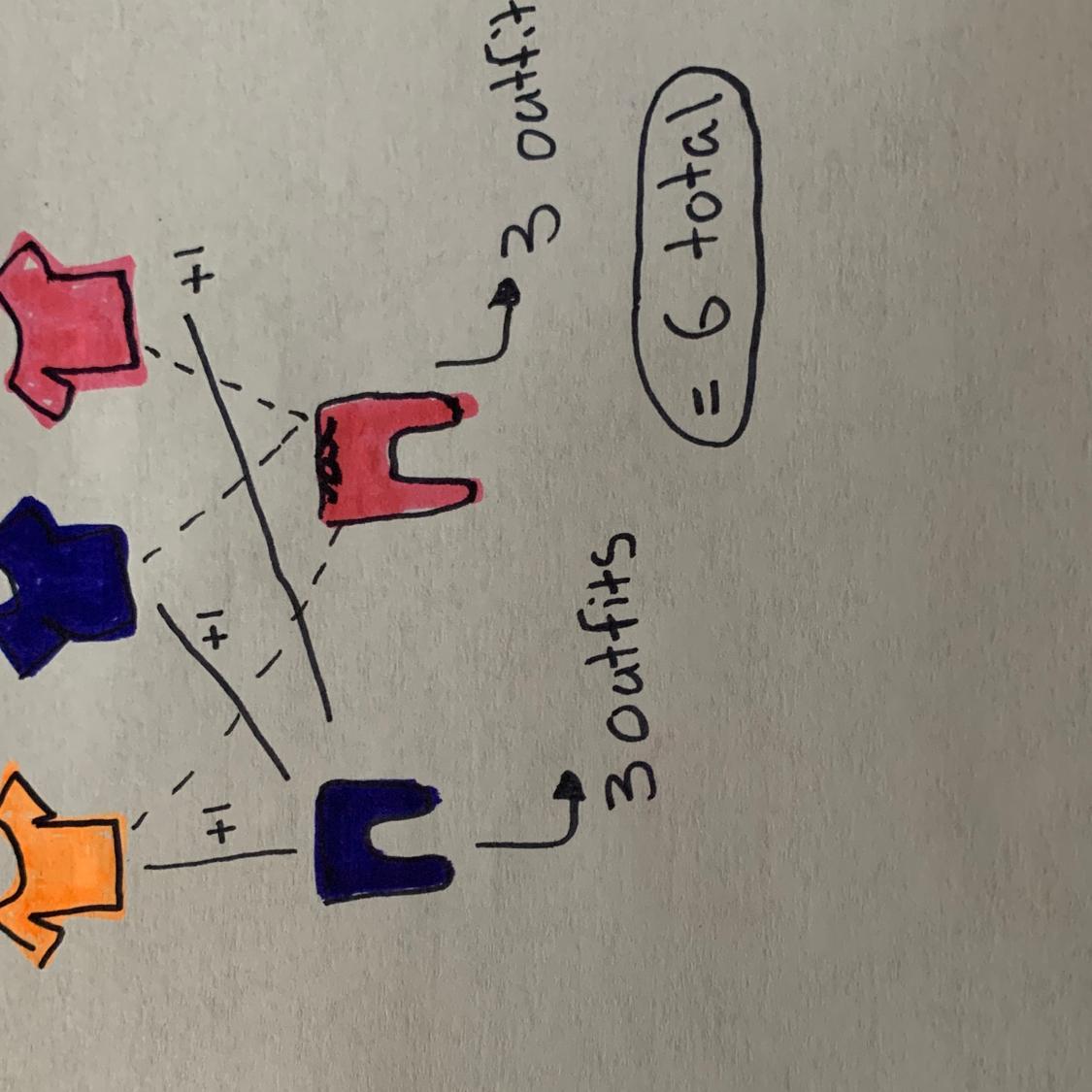 I drew a picture to explain the concept with smaller numbers. In the picture you can see that each pair of trousers creates 3 outfits by matching with the three shirts. Since this happens twice (there are two pairs of trousers) you get 3x2 and this equals 6, in my picture you could create 6 different outfits.