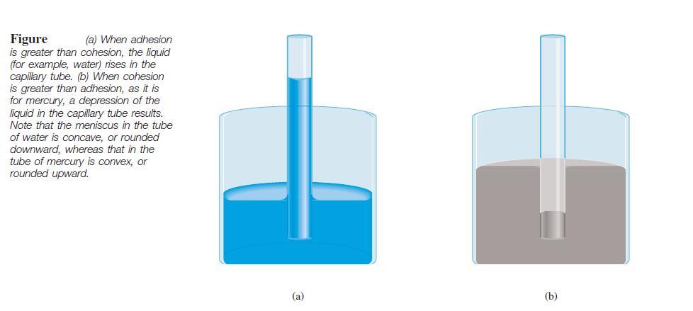 One is <em>cohesion</em><em>, which is the intermolecular attraction between like molecules (in this case, the water molecules)</em>. The second force, called <em>adhesion</em><em>, is an attraction between unlike molecules, such as those in water and in the sides of a glass tube</em>. If adhesion is stronger than cohesion, the contents of the tube will be pulled upward. This process continues until the adhesive force is balanced by the weight of the water in the tube.