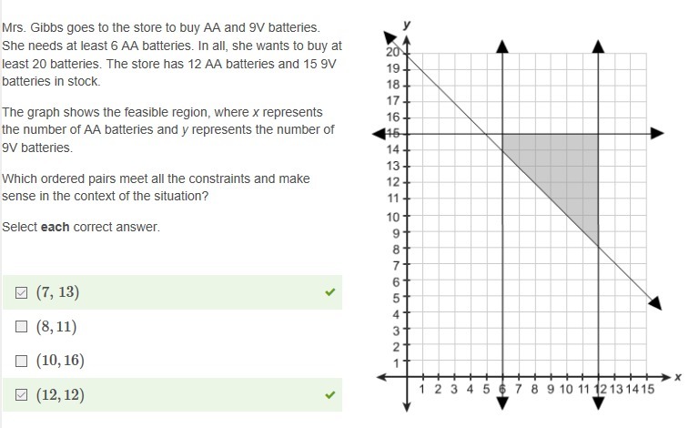 If a ordered pair meet all the constraints and make sense in the context of the situation, then the ordered pair is a solution of the system of inequalities
