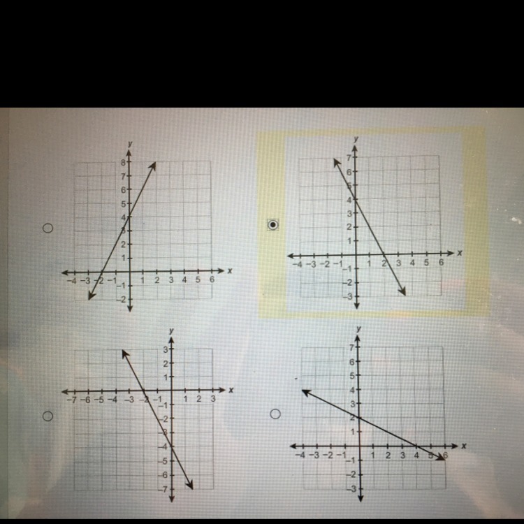 y-intercept of the line is 4 which gives us hint that graph (1) or (2) may be the correct option.