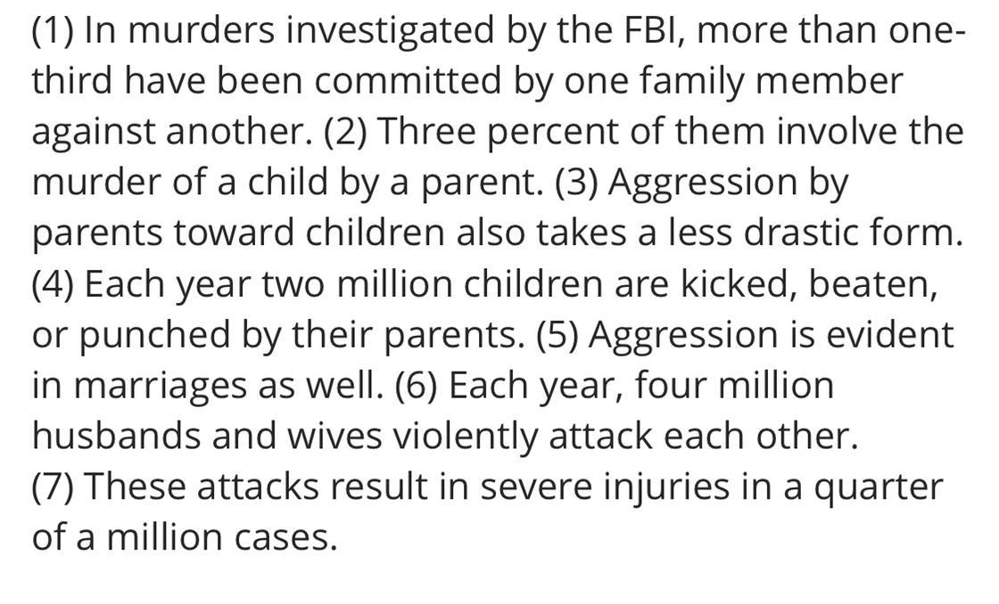 A. Abuse of children by parents is widespread in the United States B. Aggression is part of many marriages in this country. C. In the United States, family violence is increasingly steadily. D. In the United States, aggression is often directed toward members of one’s own family.