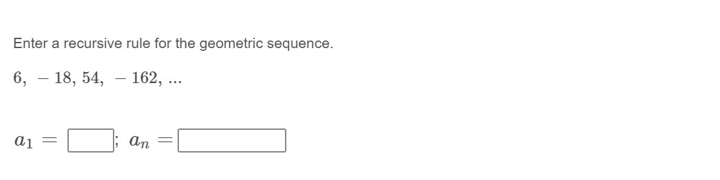 Answer:   \bold{a_1 = 6,\quad a_n=-3a_{n-1}}