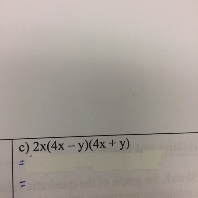 Expand : 2x(4x - y) ( 4x + y ) =  32x^{3} - 2xy^{2} .