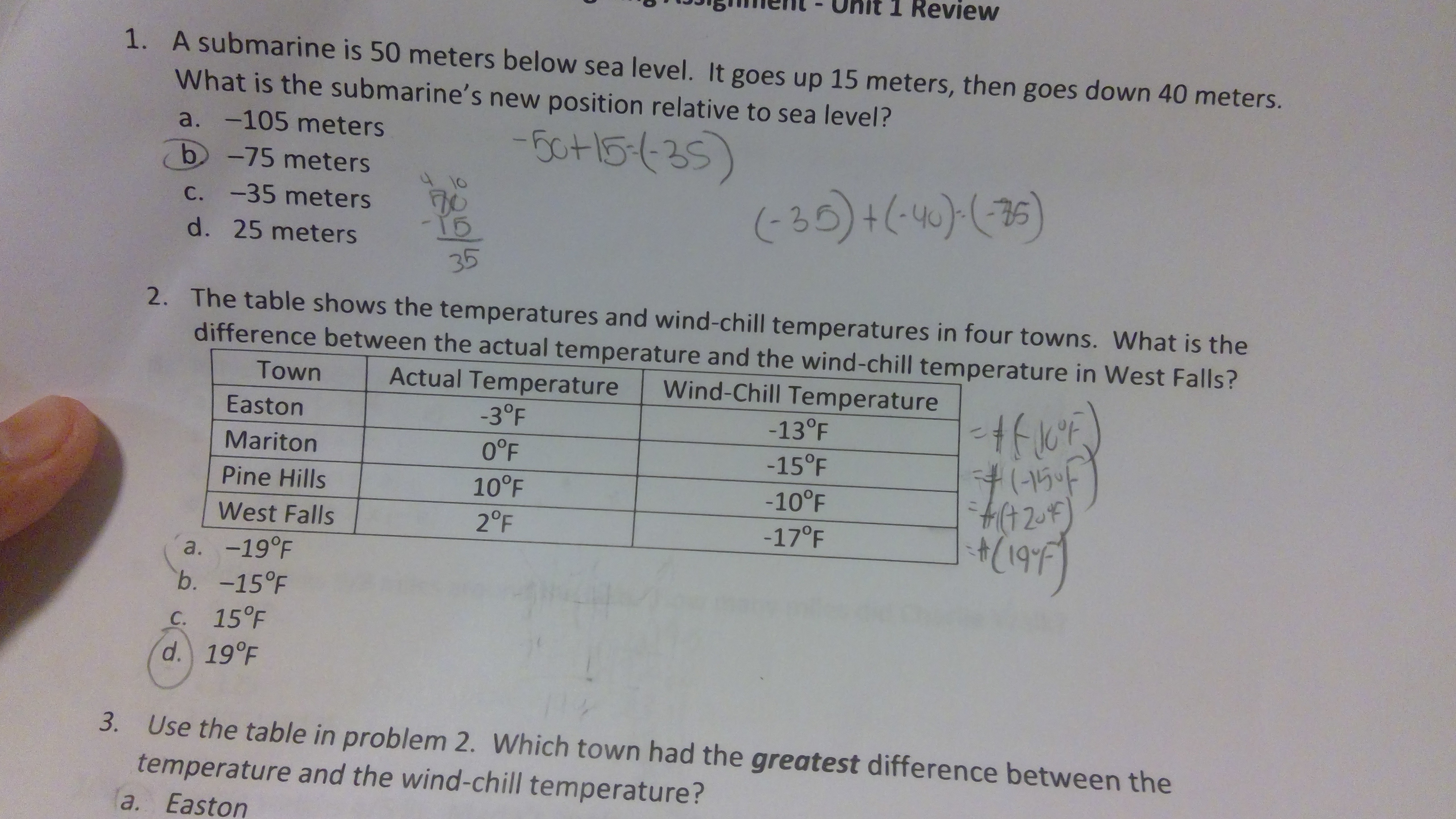 The difference between the temperatures and the wind chill temperatures is -15.