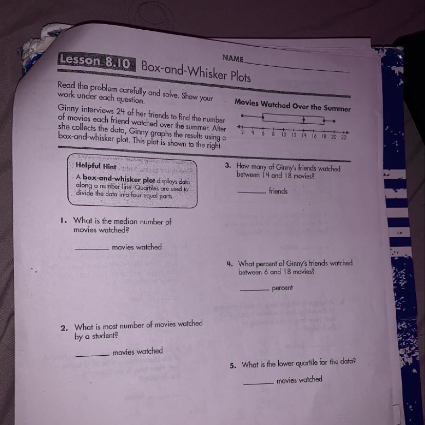 the lower quartile is where the lowest 25% of data is, so it is where the leftmost edge of the first box is, or where 6 is