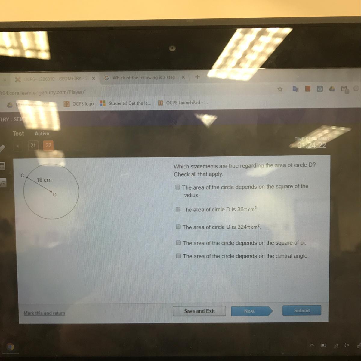 A=\pi (18)^{2}=324 \pi\ cm^{2}
