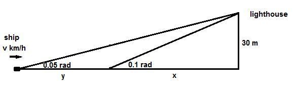 Let the ship approach the lighthouse at a constant speed of v km/h.