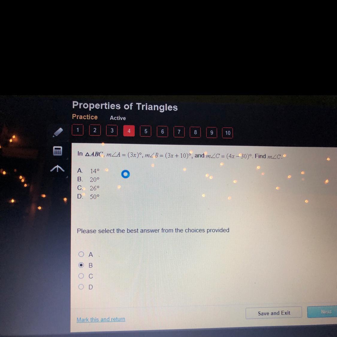 Angle C is 4x -30