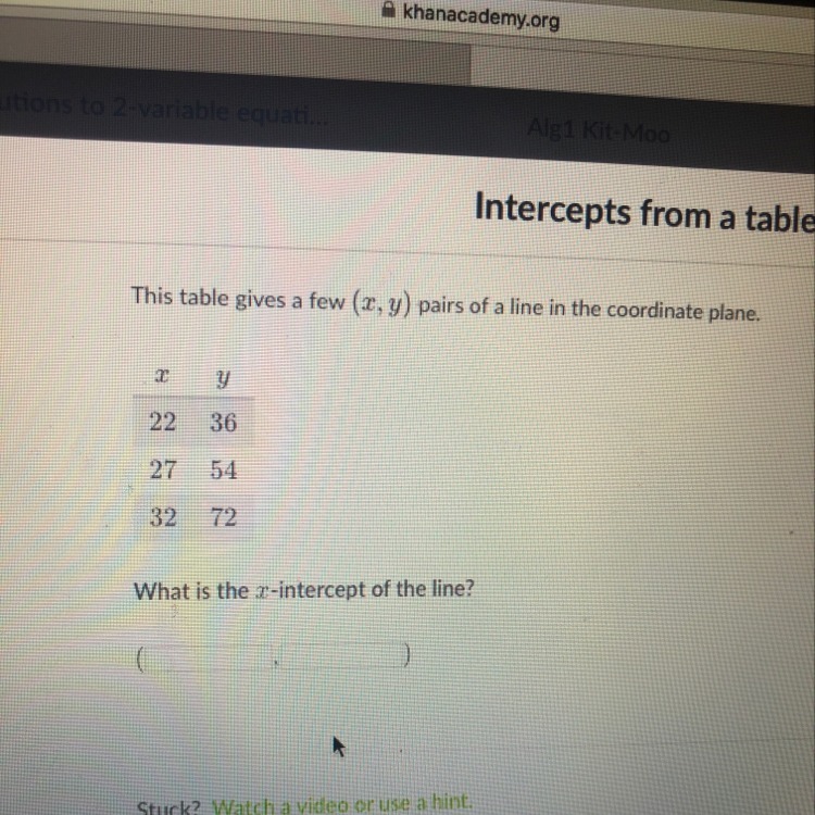 We have the points from the table (22, 36) and (27, 54). Substitute: