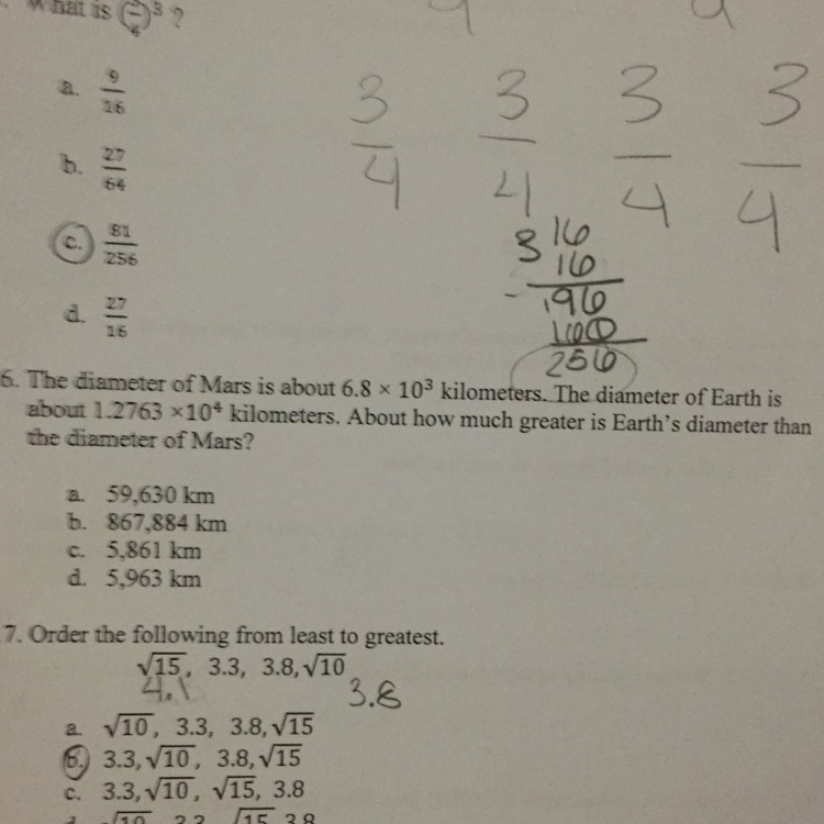 Mars- 6.8×10to the 3rd power Earth- 1.2763×10 to the 4th power