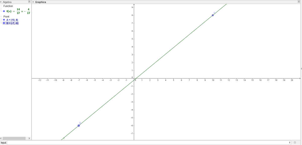 So m = (yB-yA)/(xB-xA) = 14/17