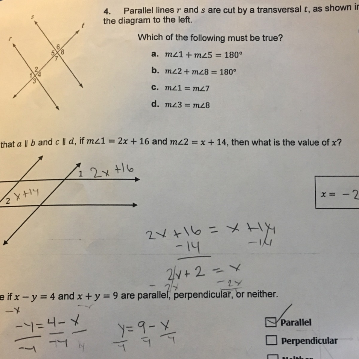 B. m<2 + m<8= 180