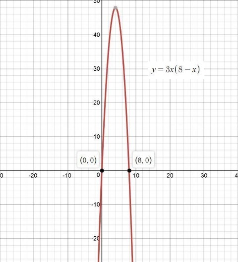 That the greatest x-intercept is x=8, then the height will be minimal and length will be maximal.