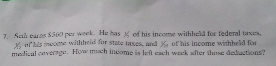 Step-by-step explanation: Given that Seth earns $560 per week. He has