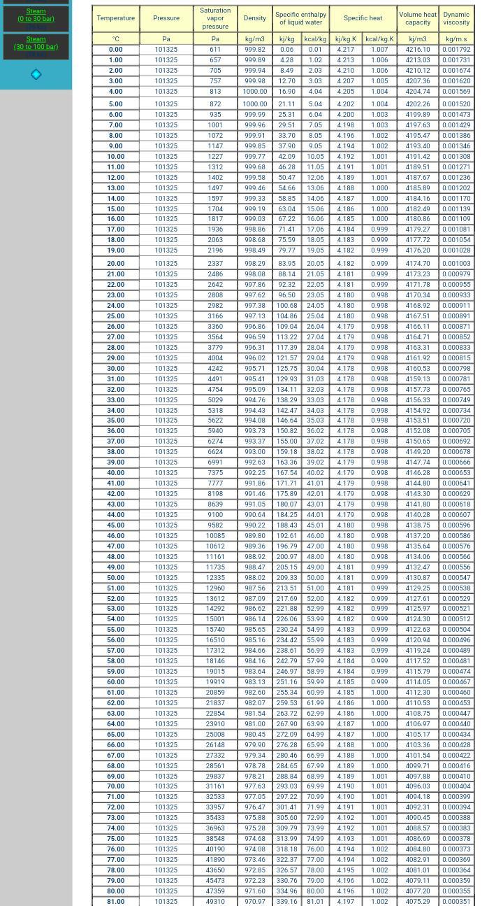 Also from the same table, at a temperature of 160°C and by interpolation, the enthalpy of the steam is;
