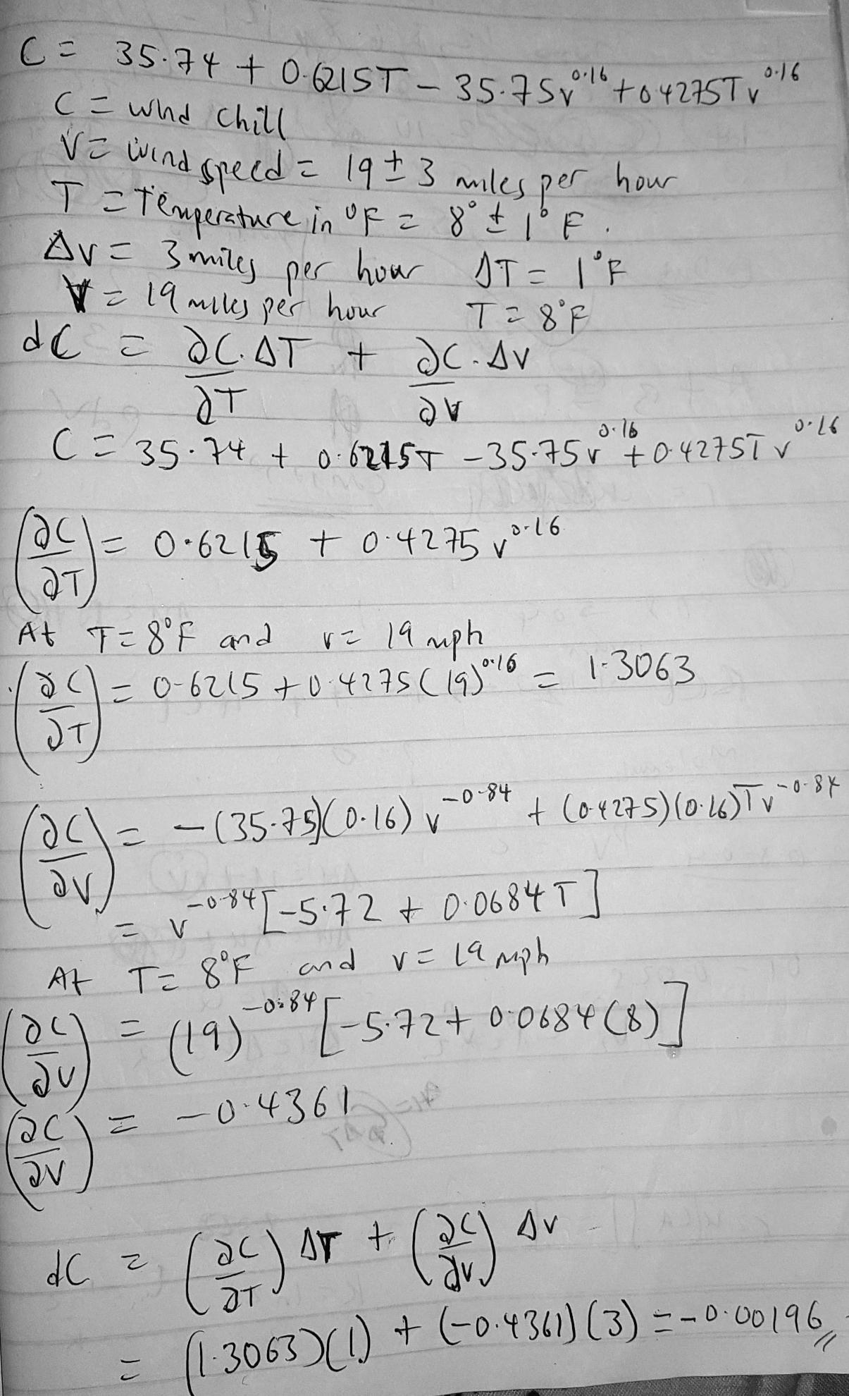 C, the wind chill in degree Fahrenheit is a multi-variable function with independent variables v and T