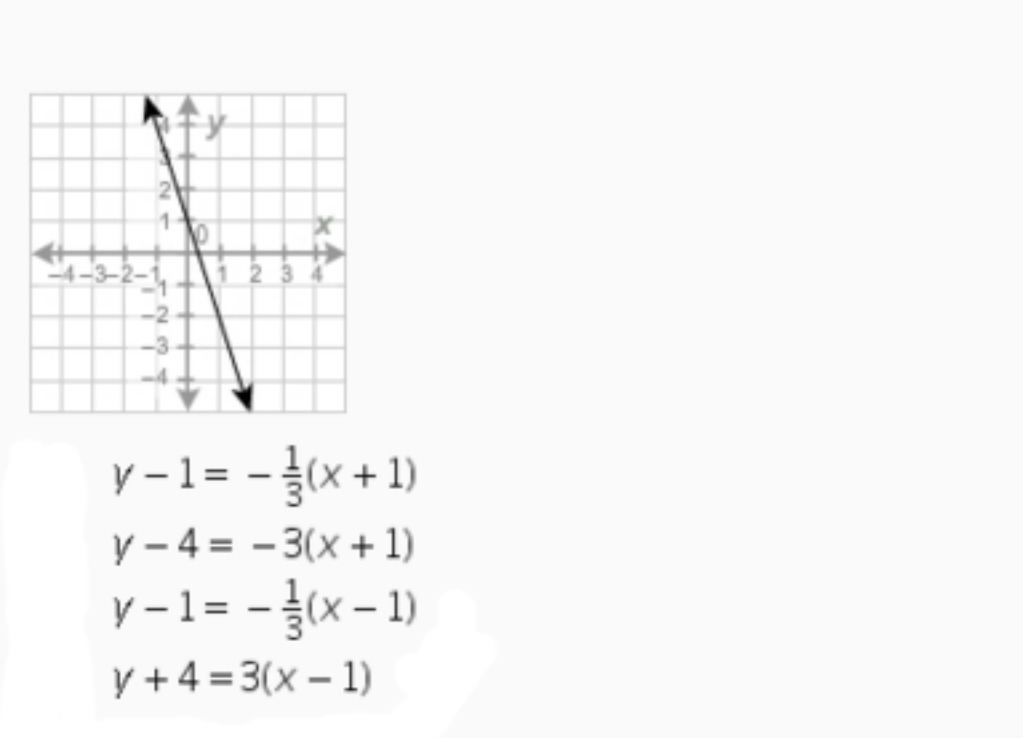 This would be y=+4(3x-1) because the y+x intercepts the middle causing,