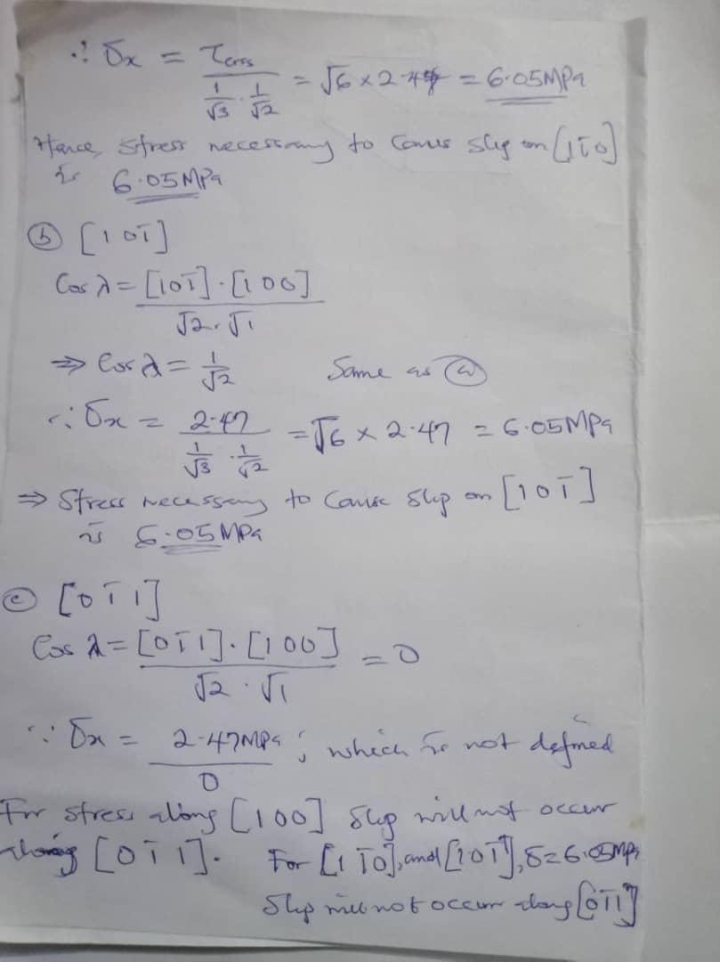 Hence, stress necessary to cause slip on [1 1 0] is 6.05MPa