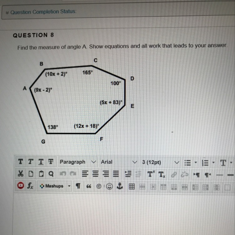 (9x - 2) + (10x + 2) + 165 + 100 + (5x + 83) + (12x + 18) + 138 = 900