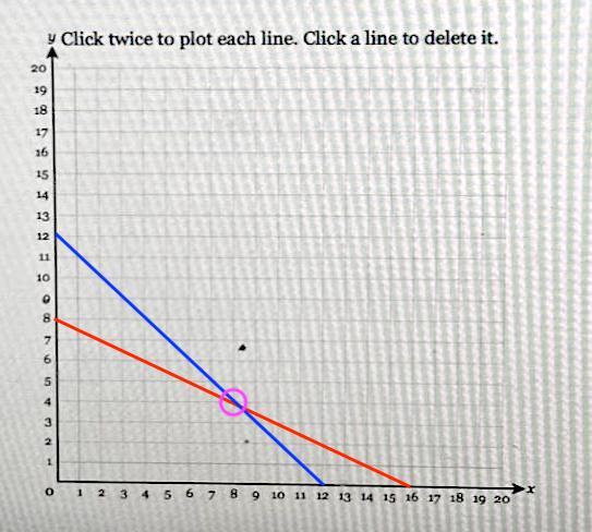 These equations are easily plotted by considering their x- and y-intercepts. The x-intercepts of the equations are found when y=0, so are 12 and 16, respectively.
