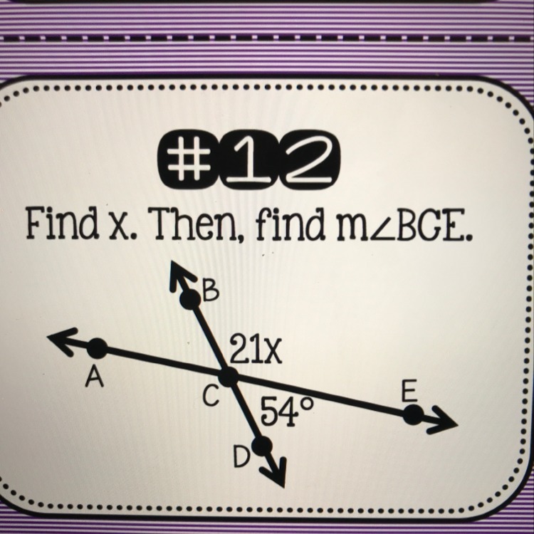 how? BCD=180, so 180-54=126 which would be your BCE then for X divide 126 by 21 and you get 6