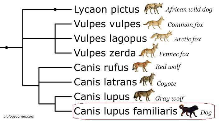 • Genus: Includes many species → Lycaon, Vulpes, and Canis are genuses