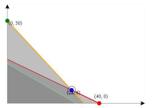 The orange line is the magnesium constraint. The red line is the copper constraint. The green line is the zinc constraint.