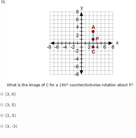 Given : Coordinate of point C is (3, -1) and is rotated 180° counterclockwise about P.