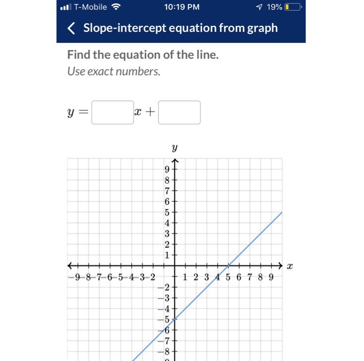 This is easy, just start at (0,0) and go down until the line intersects the y-axis. The y value at that point is the y intercept, and the y intercept, or b, of this line is -5.