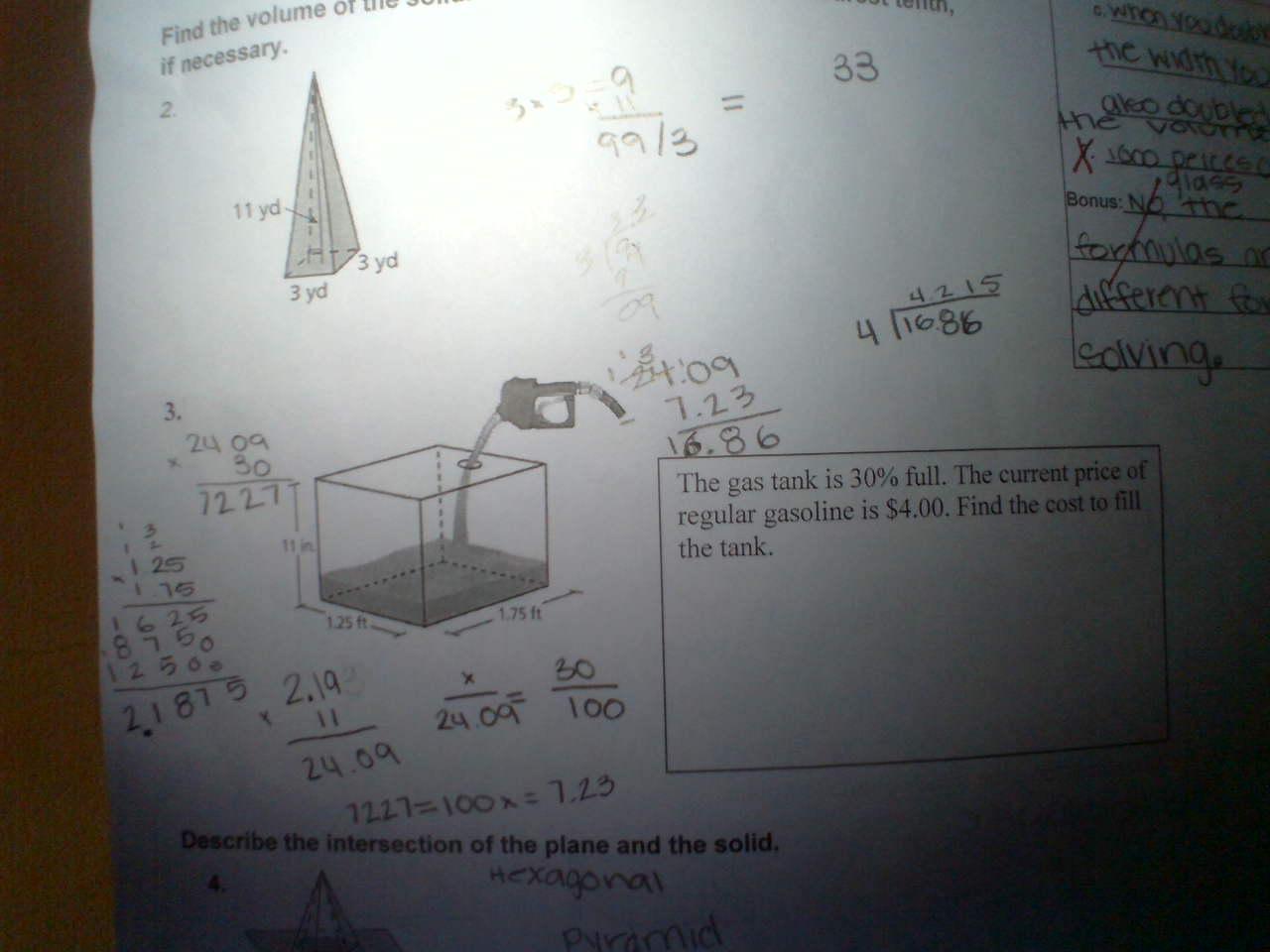 I multiplied 4.00 by 30% because it's 30% full and the regular of the gasoline is $4.00