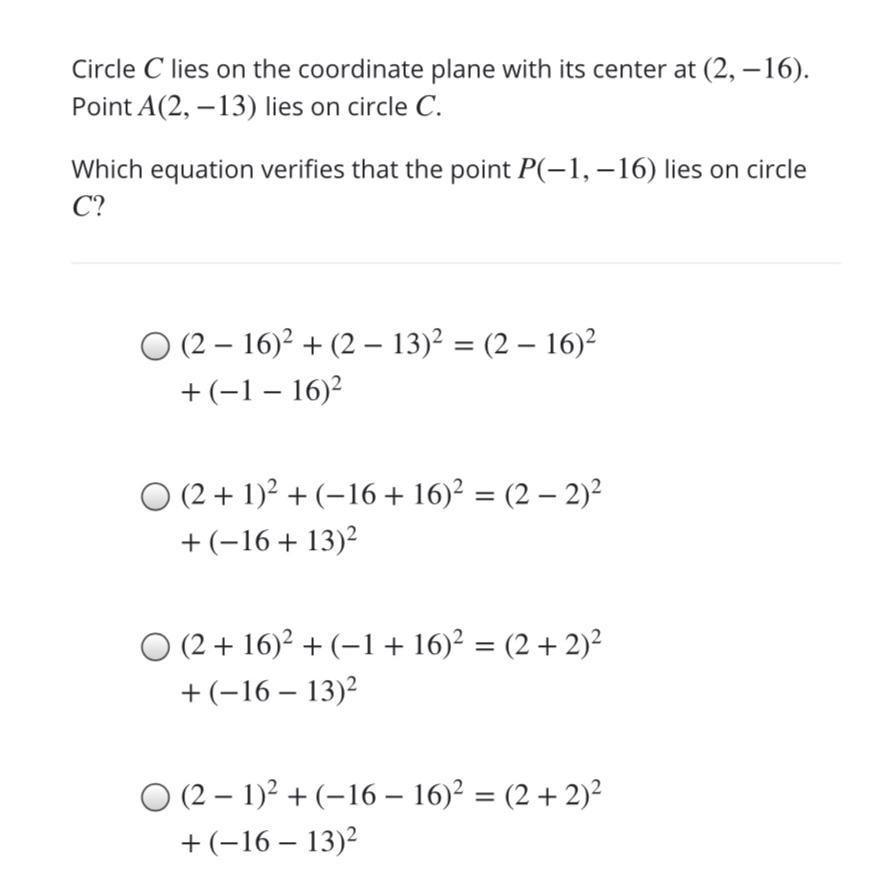 (2 - 2)² + (-13 + 16)² = (-1 - 2)² + (-16 + 16)²