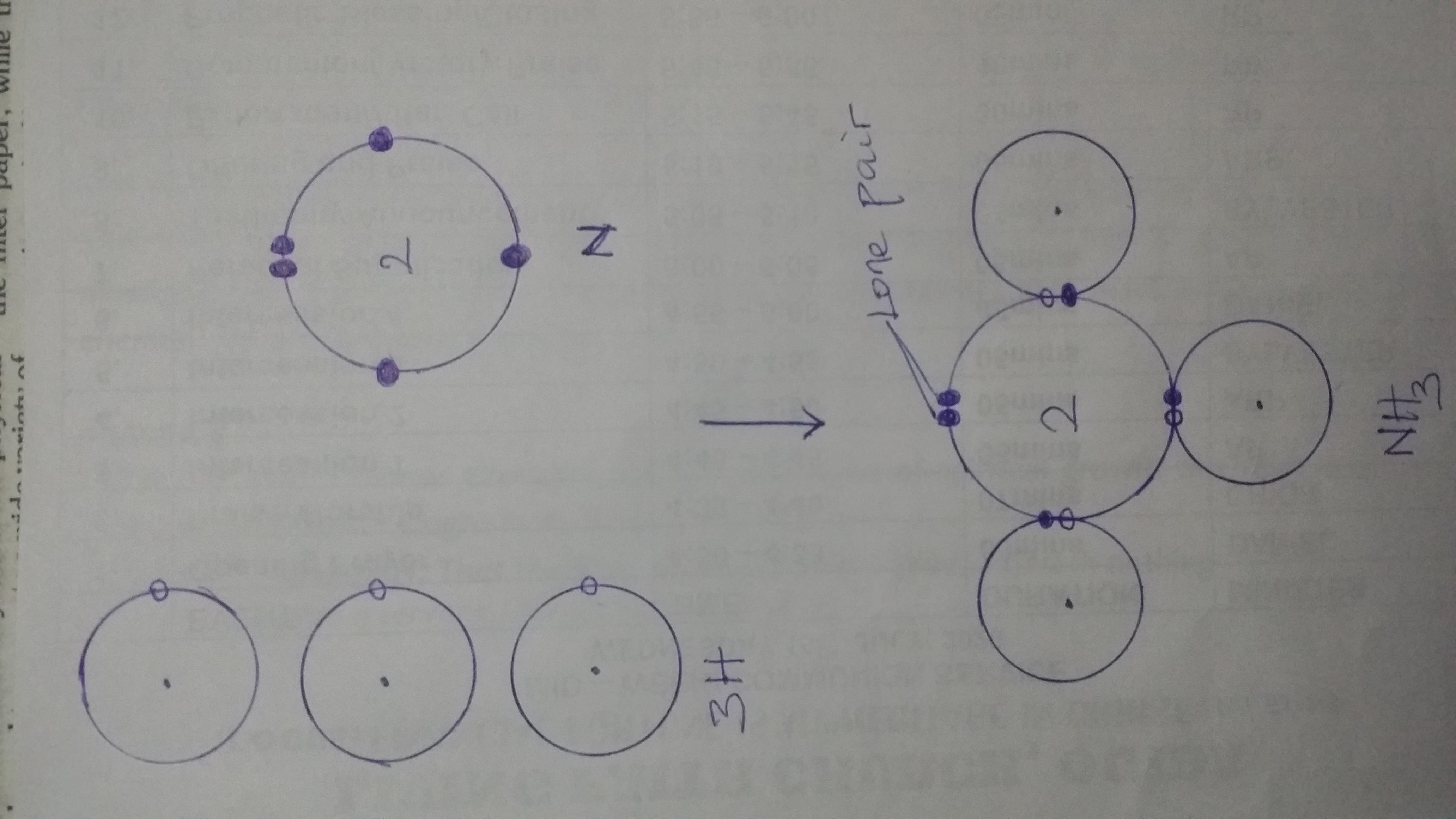 To know the number of lone pair on each H in NH3, we shall determine how NH3 is formed. This is illustrated below: