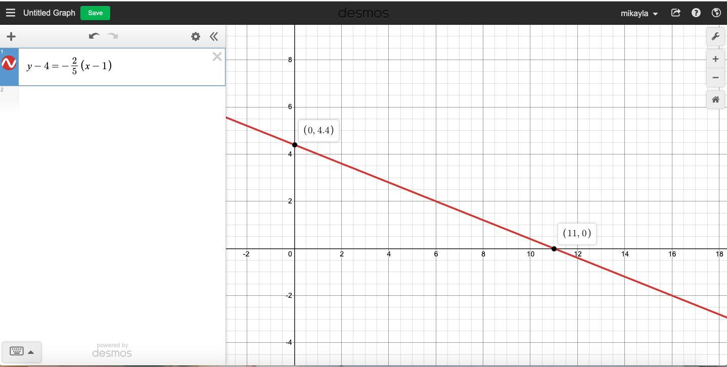 Slope of the line is -2/3 . We can use any of the given points to find the equation of the line. Lets use (1, 6)