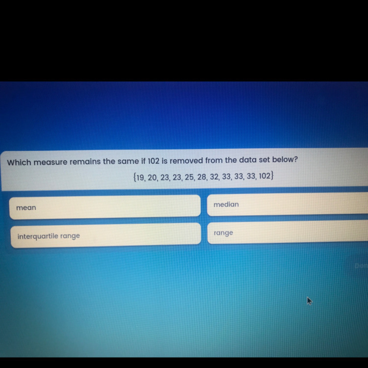 Which measure remain the same if 102 is removed from the data set below