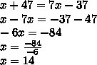 When 47 is added to a number the result is 37 less than 7 times the number.