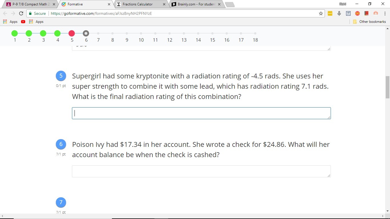 Super girl had -4.5 rad. She uses her strength to get  7.1 more rads