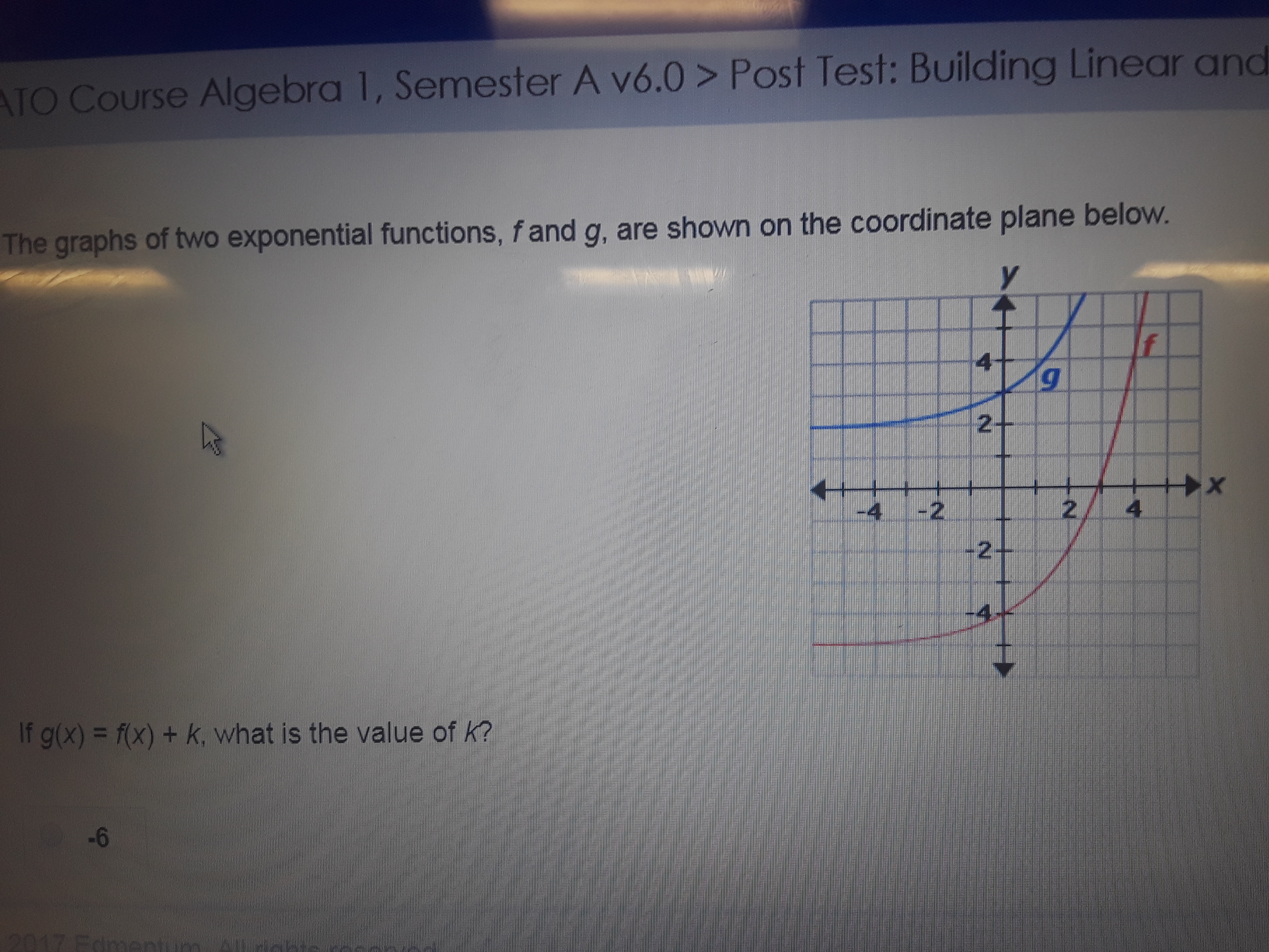 If g(x) = f(x) +k ,what is the value of k