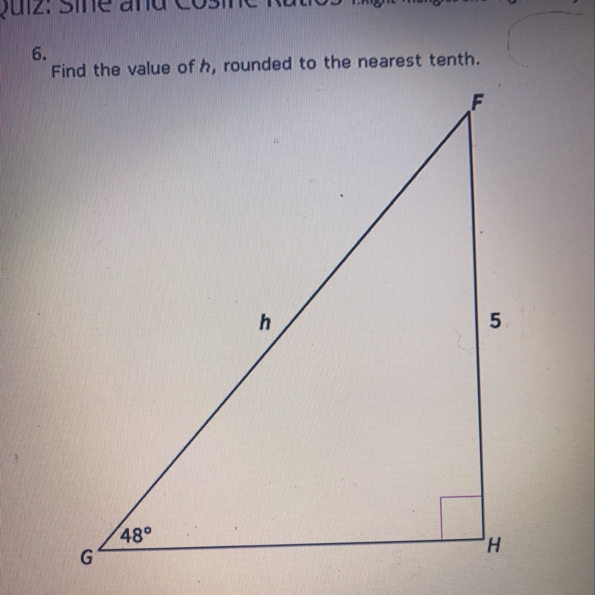 Since Sin is opposite / hypotenuse, 5/h must equal 0.74