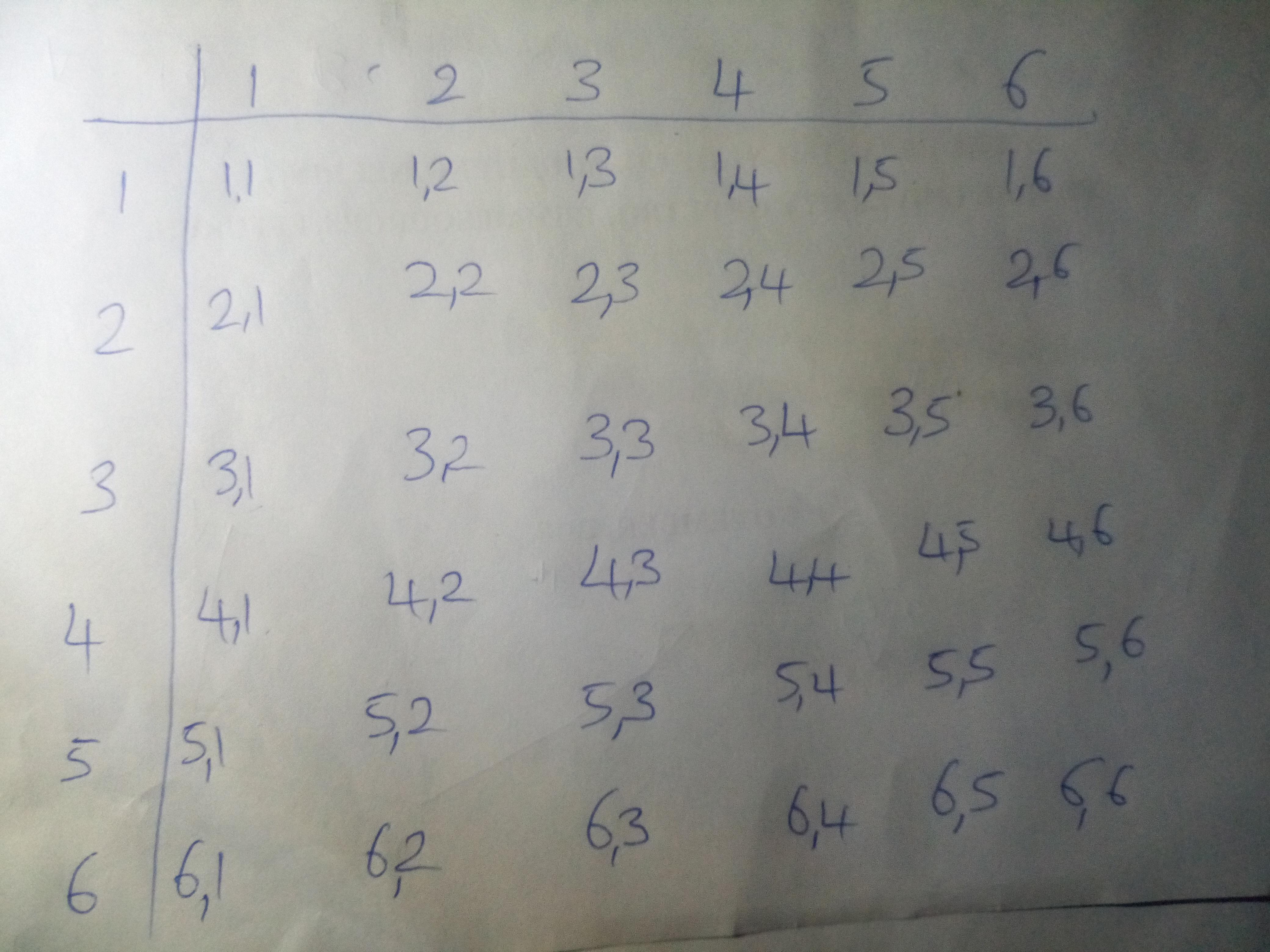 The outcomes table is shown in the attached diagram. From the table, the total number of outcomes is 36.